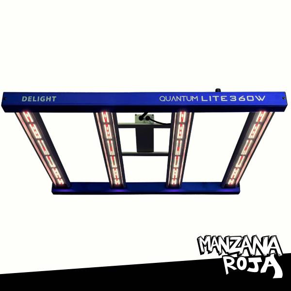 El New Quantum Lite 360W de Delight es un panel LED de espectro completo orientado a cultivos indoor que necesitan más potencia manteniendo buena eficiencia. Su cobertura recomendada es 100×100 cm, con una entrega de luz pensada para acompañar el ciclo completo del cultivo en carpa.