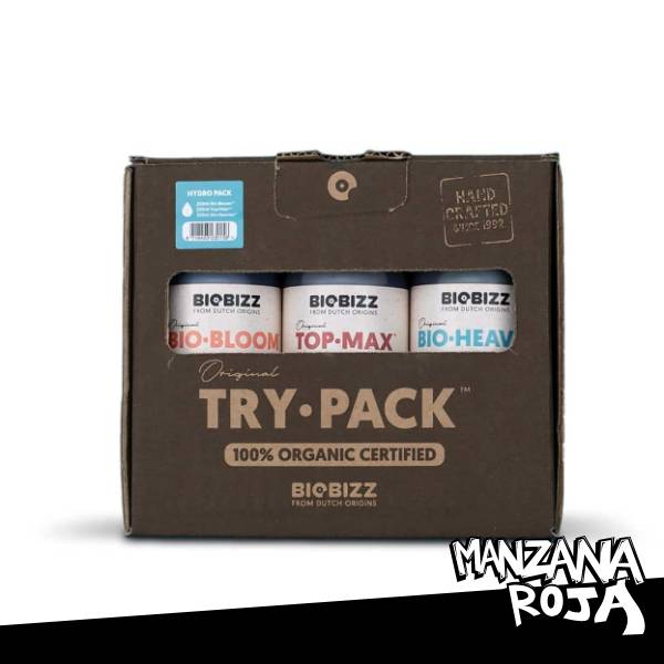 El paquete incluye una selección de 100% nutrientes orgánicos formulados para ser compatibles con sistemas hidropónicos, lo que garantiza que las plantas reciban una alimentación equilibrada y natural. Contiene Bio·Bloom, un fertilizante orgánico para la fase de floración; Top·Max, un potenciador de la floración que aumenta el tamaño de los frutos y mejora su sabor; y Bio·Heaven, un intensificador energético que mejora la absorción de nutrientes y elimina toxinas, elevando la vitalidad de la planta. TRY PACK HYDRO está pensado para ser simple y efectivo, permitiendo una fácil integración con otros productos Biobizz para una experiencia de cultivo personalizada y eficiente, optimizando el rendimiento y reduciendo los costes. Ficha Técnica: Producto: TRY PACK HYDRO Fabricante: Biobizz Tipo: Kit de Nutrientes Orgánicos para Hidroponía Contenido del Pack: 250ml Bio·Bloom (Fertilizante de floración) 250ml Top·Max (Potenciador de floración) 250ml Bio·Heaven (Intensificador energético) Características: 100% Orgánico, compatible con sistemas hidropónicos Uso: Desarrollo óptimo de raíces y protección de plantas hidropónicas Combinabilidad: Puede usarse con otros productos Biobizz